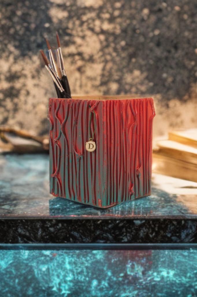 The signature design of Davide Dimora defines this handcrafted pen holder, part of the exclusive 2025 collection, which features fewer than 10 extremely rare models. The gradient pattern, blending shades from blue to red, adds a bold and sophisticated touch to any workspace or home setting.
