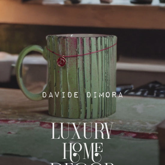 The signature pattern of Davide Dimora defines this mug, just like the rest of the exclusive 2025 collection, which features fewer than 10 extremely rare models. The design, presented in an elegant shade of light blue, is perfect for adding a unique touch to any home environment.