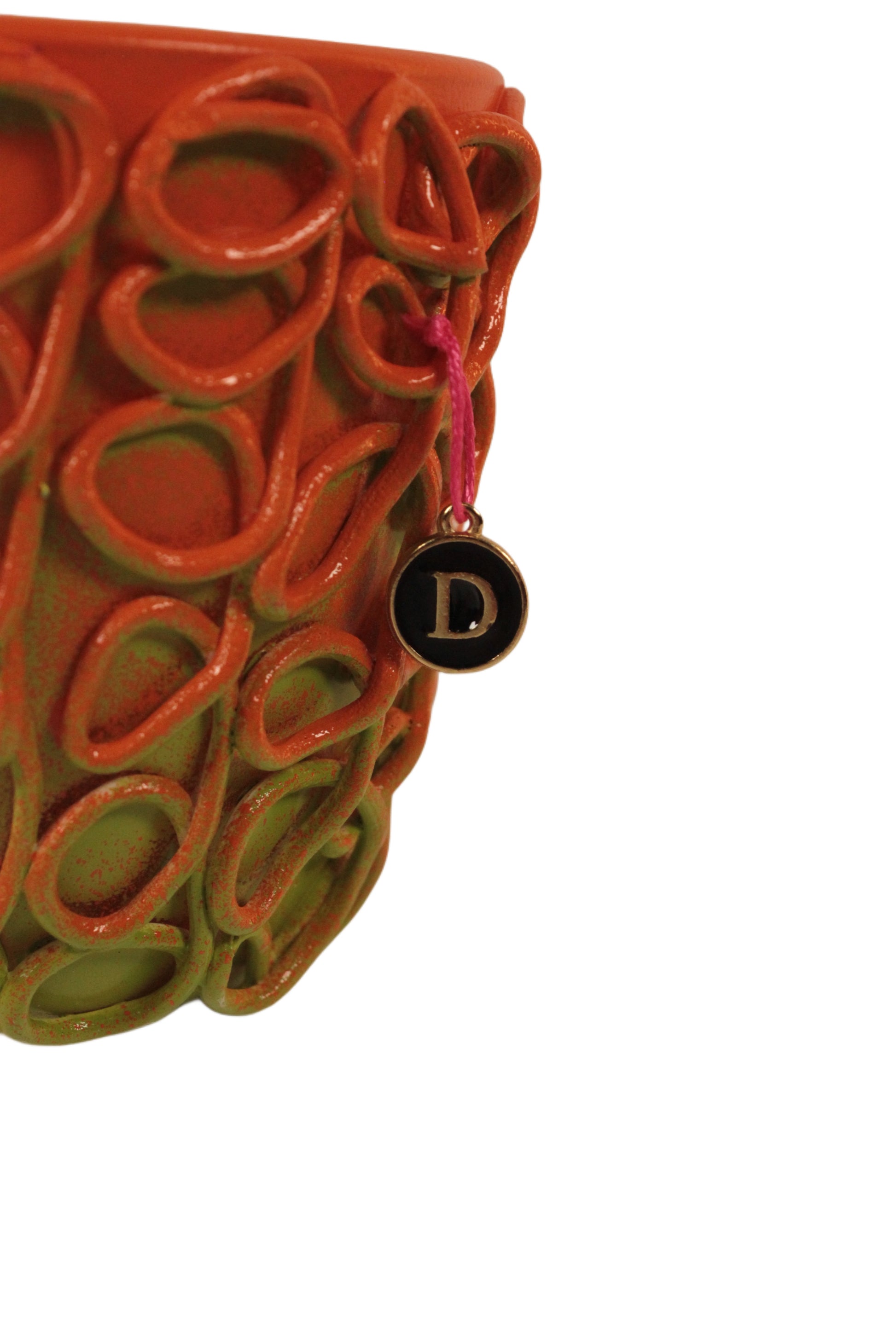 The signature design of Davide Dimora defines this handcrafted glass, part of the exclusive 2025 collection, which features fewer than 10 extremely rare models. The dynamic gradient, blending vibrant shades of orange and green, makes it a striking piece—perfect for adding a fresh and colorful touch to any table setting or decor.